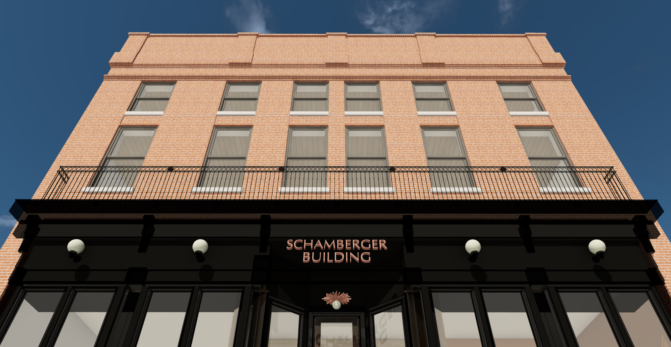 The Schamberger Opera House, circa 1910, is a locally designated historic landmark. And while there are hints of the theatre at the second floor and loft, the storefront facade has changed many times to accommodate the original soda fountain, the midcentury car dealership, or the professional offices that are now located there. This storefront design is a call to remember and celebrate the drama and history of the building while recognizing its contemporary realities.